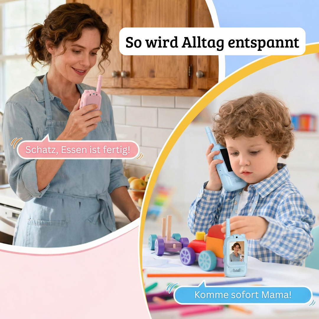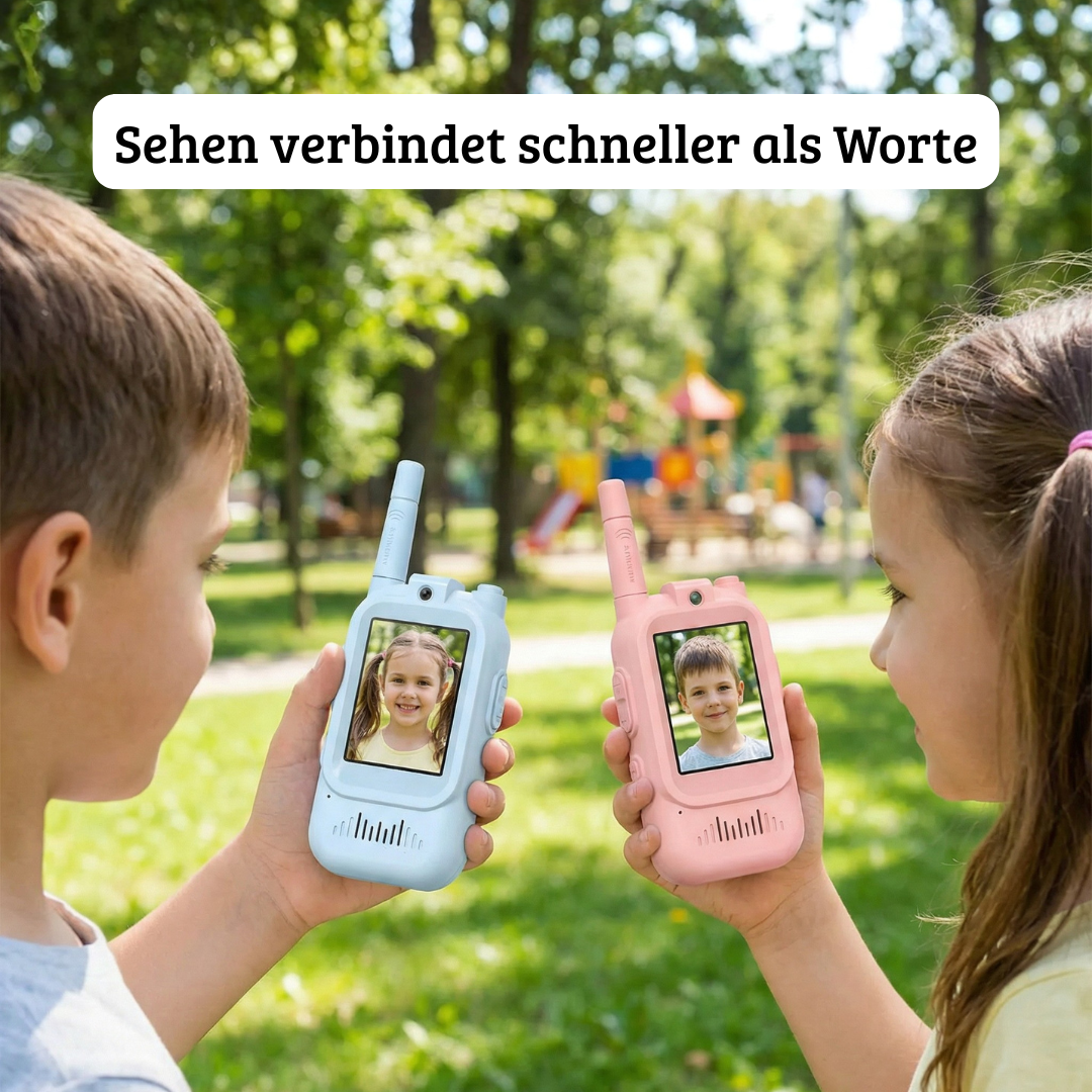 Der Moment, in dem Dein Kind außer Sichtweite gerät, erzeugt Stress. Klassische Walkie-Talkies helfen nur bedingt – keine Sicht, nur Ton, keine Gewissheit.