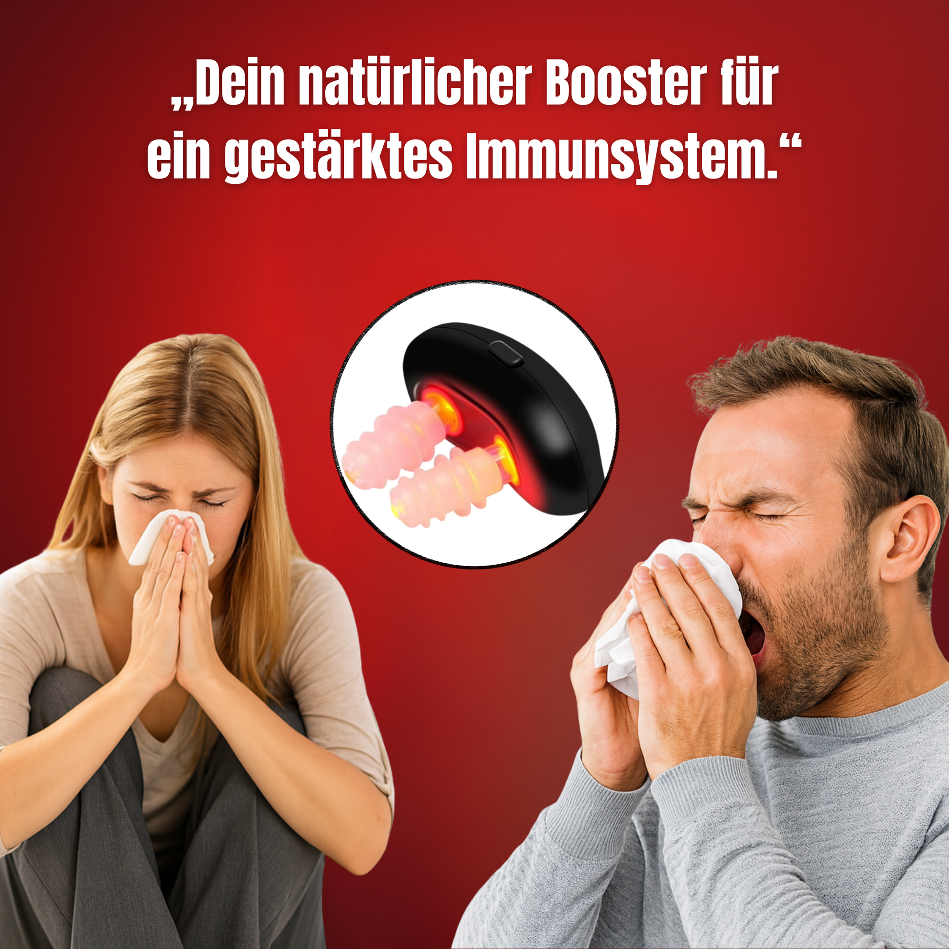 Sanftes Rotlicht dringt ins Nasengewebe ein, reduziert Schwellungen und öffnet deine Atemwege – ganz natürlich.